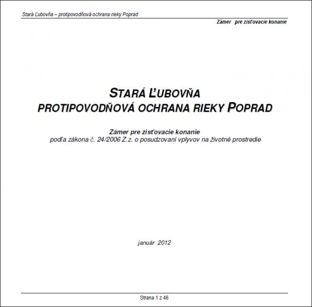 o zámere „Stará Ľubovňa - protipovodňová ochrana rieky Poprad".