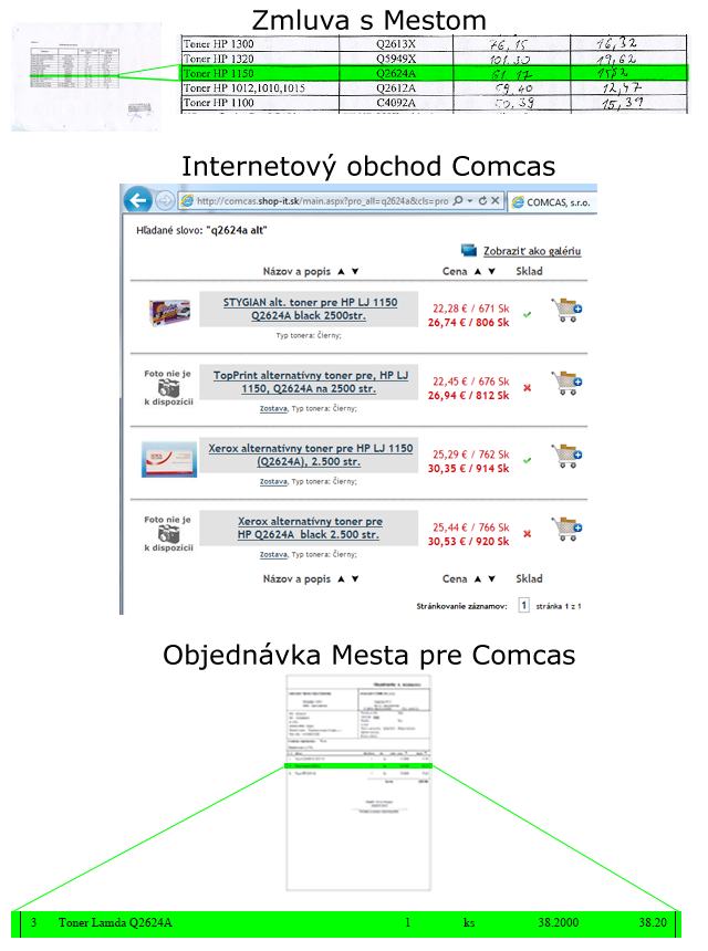 Spoločnosť Comcas, s.r.o. vyhrala verejnú súťaž pre náhradu toneru Q2624A s cenou 15,52€ za kus, čo je skutočne bezkonkurenčná cena a dokonca natoľko bezkonkurenčná, že jej nevie konkurovať ani samotná spoločnosť Comcas, ktorá na svojom internetovom obchode uvádza najlacnejšiu náhradu toneru Q2624A v cene 26,74€ a najdrahšiu za 30,53€.
